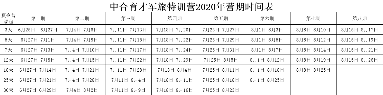 中合育才特训营结合本身实际、国家节假日安排,初步拟定2020年全年的中小学生军事夏令营、假期体验营计划,以供宝宝们家长参考,并根据情况选择活动安排。另成人拓展、公司团建、亲子活动、儿童拓展、家庭日活动、军事魔训等活动随时根据企业需求来定制并执行。